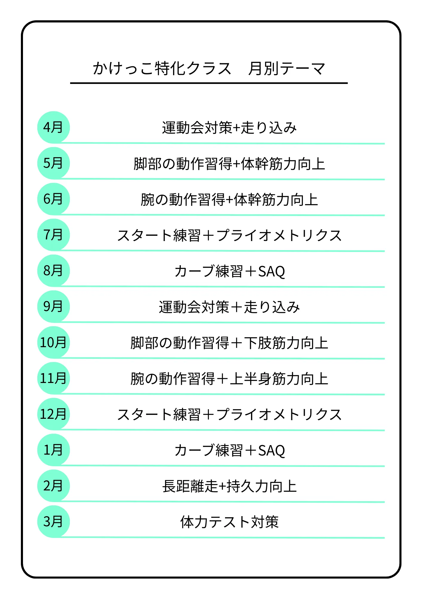 • フォーム: 力を効率よく伝える走り方の基礎を身に付けます